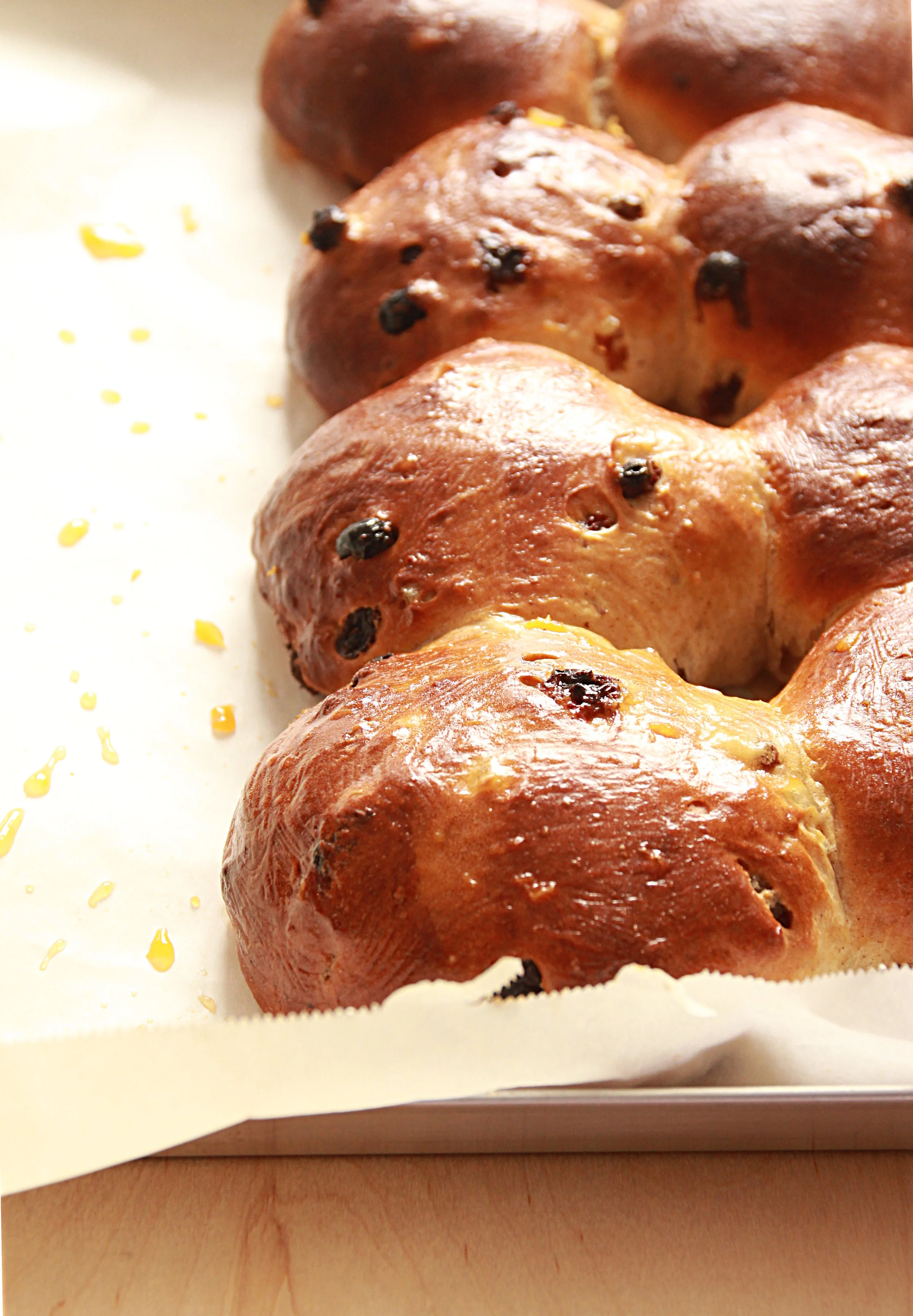 I discovered hot cross buns in the far 2007, on Sigrid’s food blog. I lived in Finland at that time and, given my great passion for brioche, they immediately caught my attention. I then moved to Brussels and almost forgot about the hot cross buns. It was during the Easter week of 2015 that, meanwhile walking on Bank Street, I recognized some hot cross buns, exposed in a bakery. I rushed to buy the last two left and, on my way home, I thought about the wonderful breakfast awaiting for me the day after.